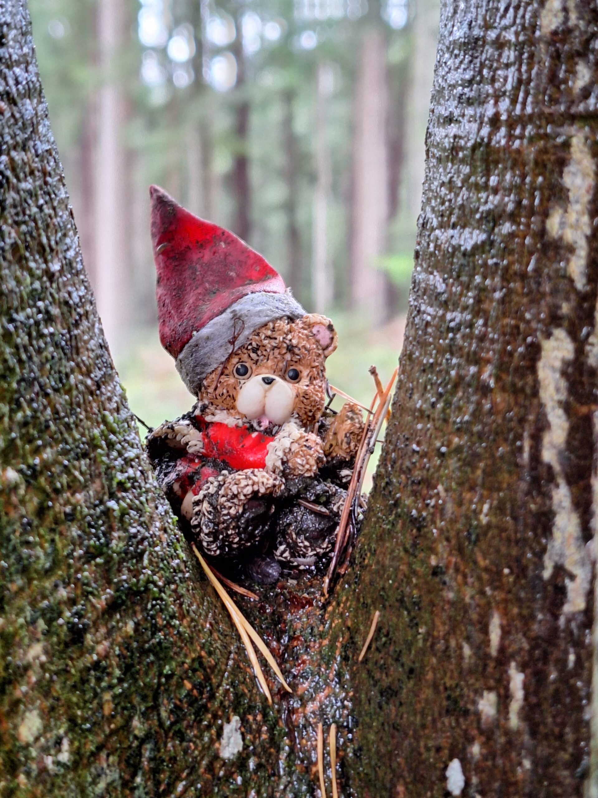 Und dann stellte meine Freundin ein Foto von einem kleinen schmutzigen Bären, der zwischen ein paar Zweigen im Wald sitzt, in ihren Status. Sie hat dieses kleine Stofftier bei einem Waldspaziergang entdeckt.